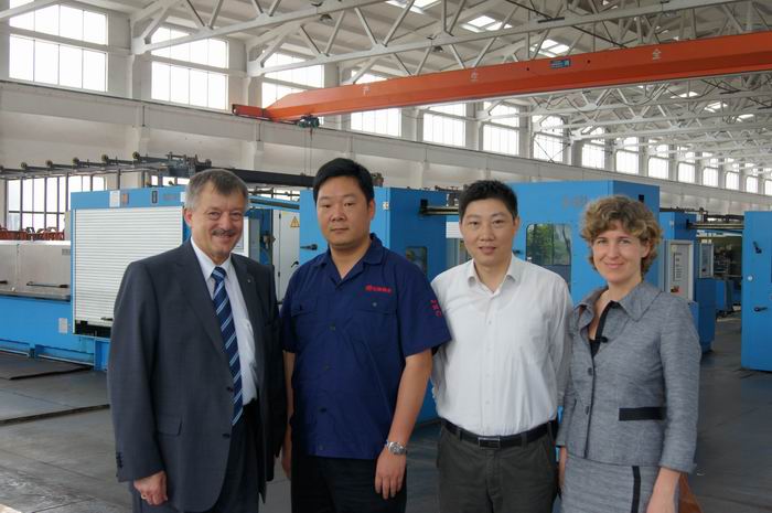 注:尼霍夫機械制造有限公司創始于1875年,作為歷史悠久的電纜設備制造廠商,在拉線、電鍍和束線等領域均處于世界領先地位。NIEHOFF與江潤銅業之間的合作源遠流長,始于九十年代初,國內首家引進了M85高速連續退火大拉設備,因為他的技術、品質、服務以及德國工業的嚴謹作風,促使我們從2000年起分批引進了120多臺套系列拉線、電鍍錫、電鍍銀、束線等先進裝備。二十年的歷程,二十年的風雨,我們攜手同行、共同成長。新型號設備的試用、使用意見反饋、改進完善,我們之間一直在進行著技術交流和互動。2004年,我們引進了國內首條WPT4000鍍錫生產線,經雙方工程師的通力合作,使92年產M85和新鍍錫機聯動生產成功,創造了亞洲地區首條拉線、電鍍聯動生產線。